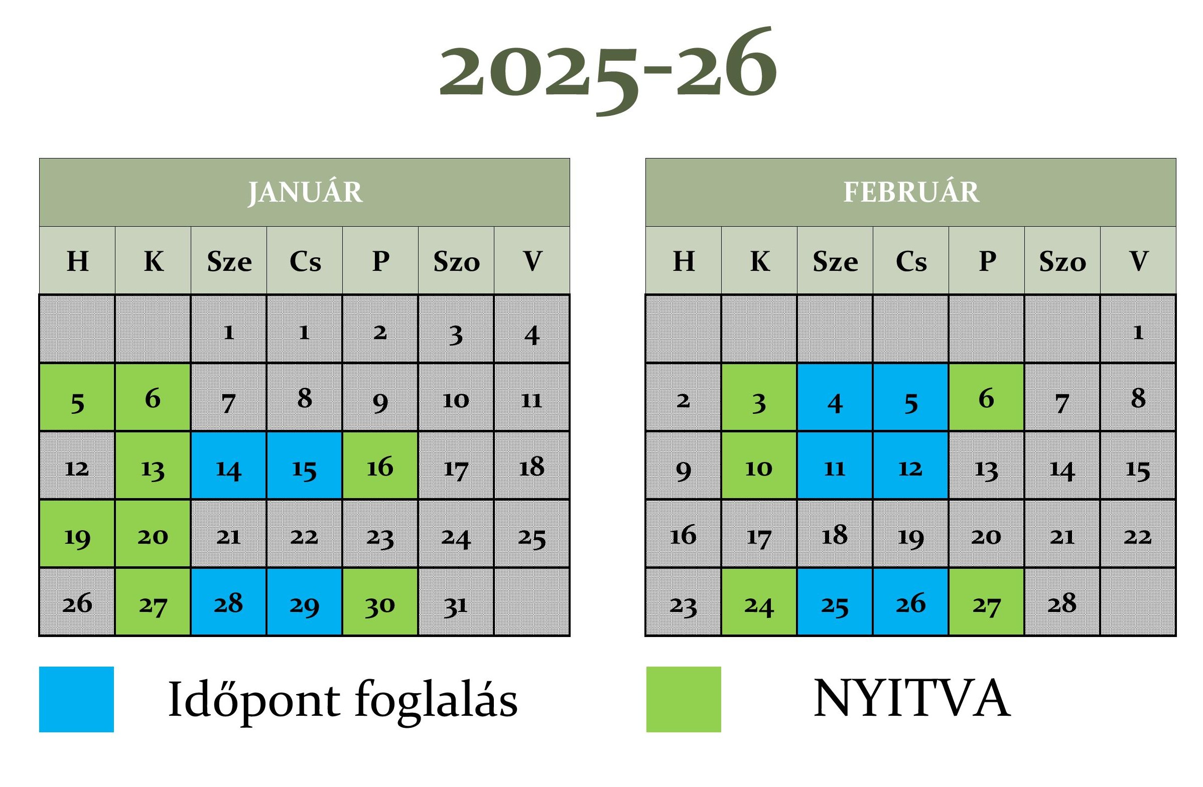 2026. január 3-tól 2026. március 27-ig Szerdán és Csütörtökön (csak időpont foglalással),